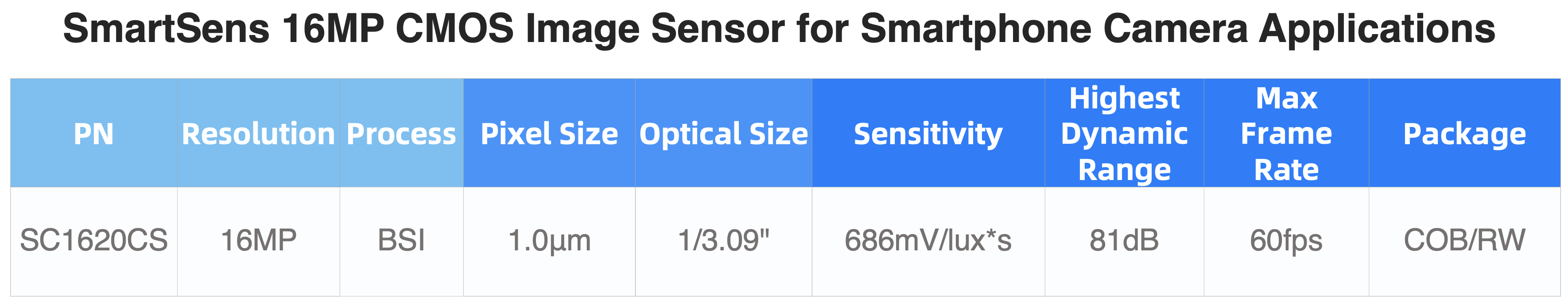 Shanghai, China, March 14, 2024 SmartSens Technology (Shanghai) Co., Ltd. (SSE STAR MARKET: 688213), a technologically-advanced CMOS image sensor supplier, recently announced a new CMOS image sensor of SmartSens Cellphone Sensor (CS) Series, the 16-MegaPixel (MP) SC1620CS. Leveraging SmartSens’ advanced technologies including SmartClarity®-3 and SFCPixel-SL®, the 1.0μm BSI image sensor features high sensitivity, high dynamic range, low noise, etc., which make it ideal for smartphone camera applications such as rear main cameras and rear wide-angle cameras.