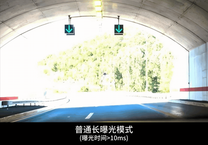 SC860AT在AB-Exposure™双帧曝光控制模式下,A帧可设置>10ms的较长固定曝光时间,用于充分捕获交通信号灯、车灯以及道路指示牌等LED光源的频闪信号,有效避免因LED闪烁导致的亮度不均或显示不完整等问题,确保图像采集的连续与完整;B帧则可设置为自动曝光,当遇到建筑玻璃反光、夜间对向车辆远光灯等强光场景以及行驶车辆、行人等运动对象时,通过降低曝光时长,有效抑制画面过曝和运动拖影产生,实现明暗清晰无拖影的高帧率高质量影像。