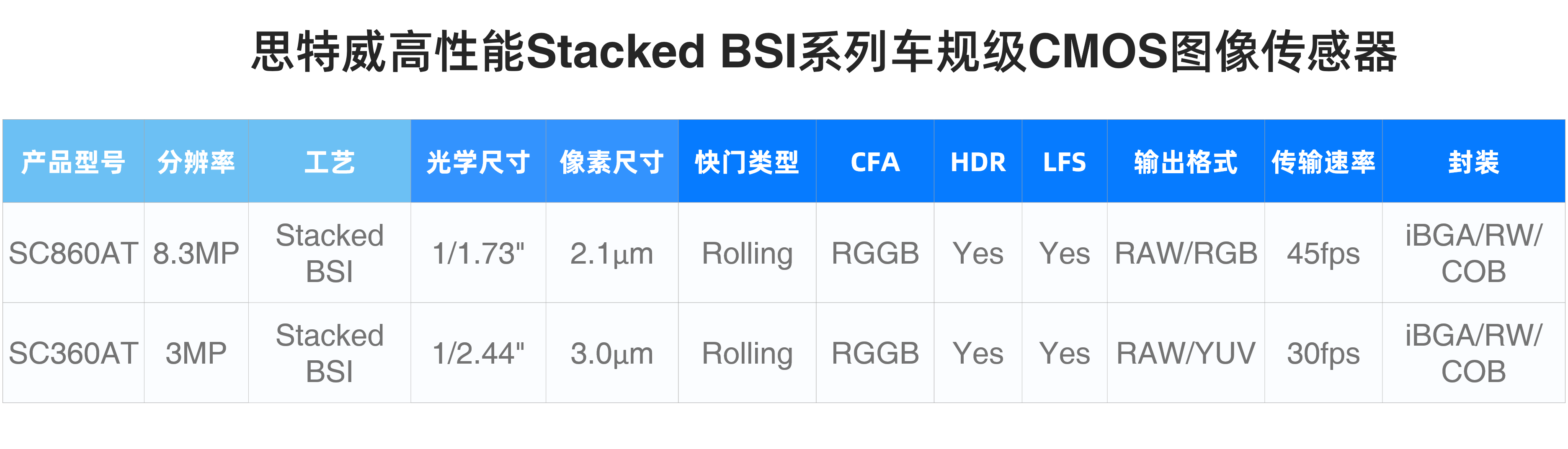 此外,SC860AT还支持RW与COB封装版本,能够为客户提供多样、灵活的产品配置选择,助力车载前视、侧视、后视及舱内OMS摄像头应用设计的加速升级。